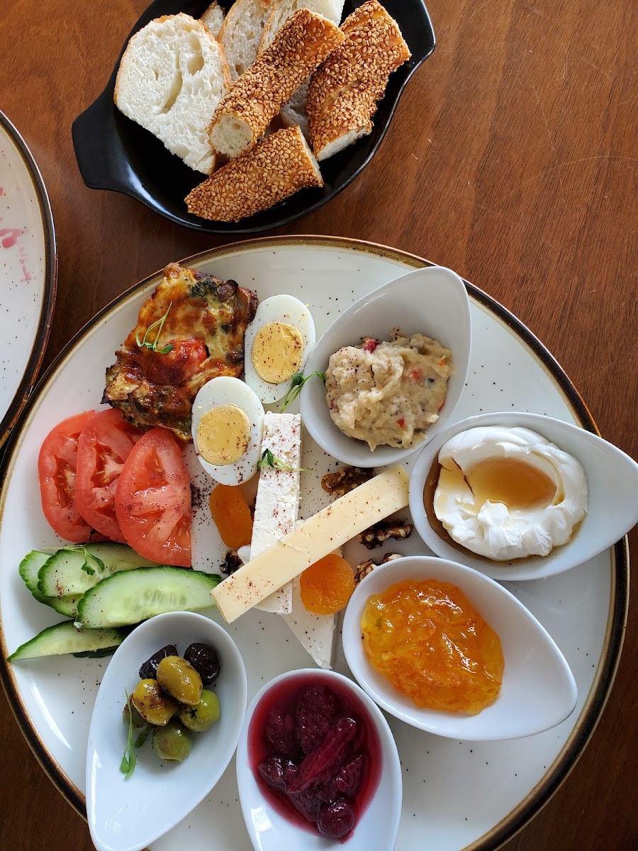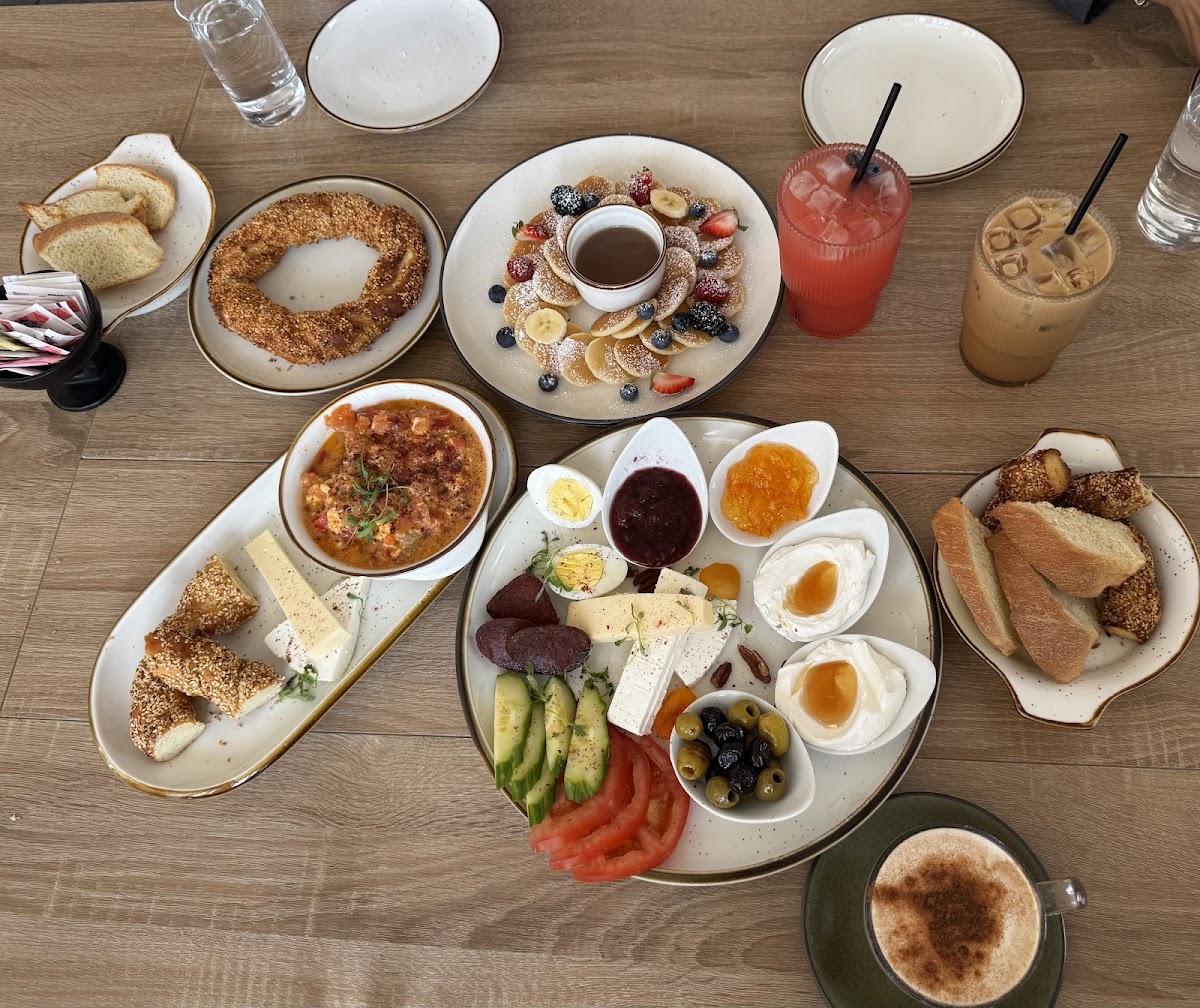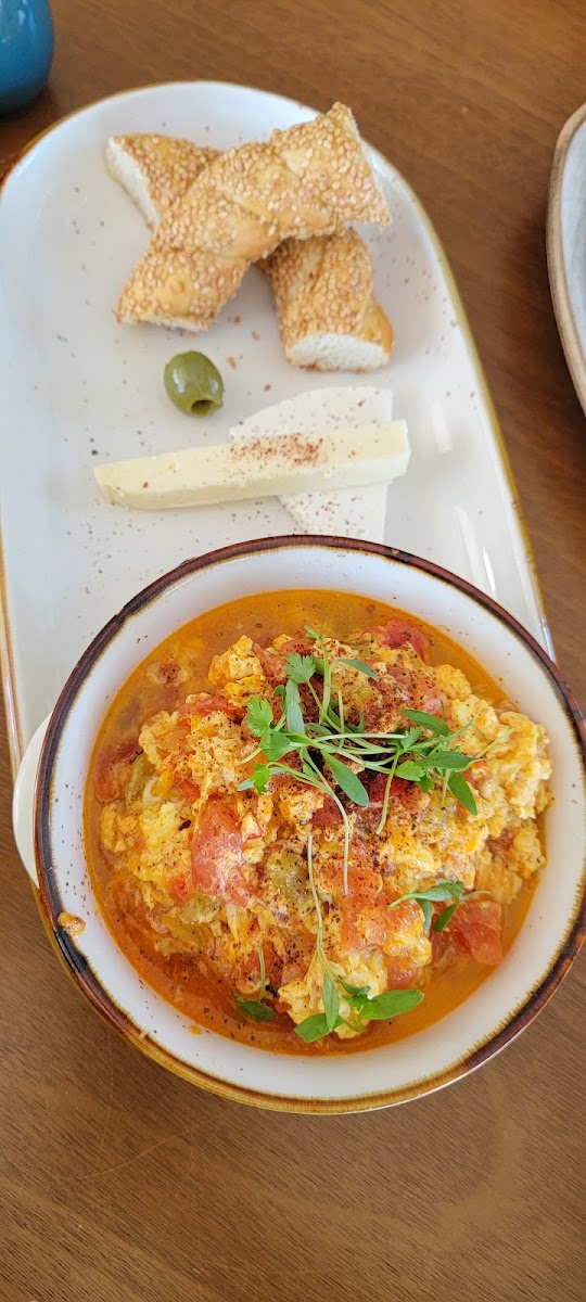 The menu leans heavily into brunch classics but adds a Mediterranean-inspired twist that makes the experience memorable. One plate that stood out was the bold shakshuka-style eggs, slow-simmered in a rich tomato and pepper base. Watching the kitchen work is part of the charm; everything is cooked to order, and you can see how timing matters. Eggs are pulled at just the right moment, which lines up with culinary research from organizations like the American Egg Board, noting that precise temperature control preserves both texture and flavor. That attention shows up on the plate.